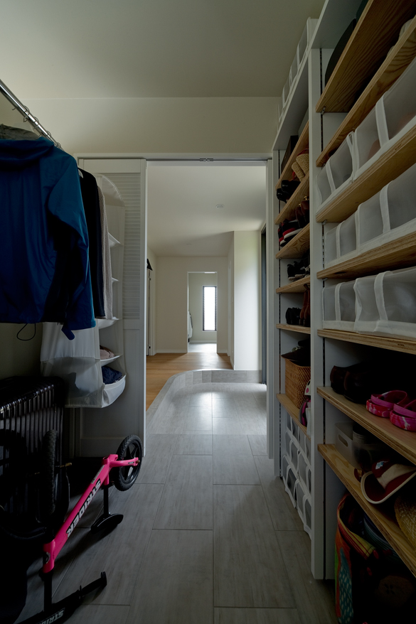 玄関での動線が滞らず、暮らしのリズムを崩さない。