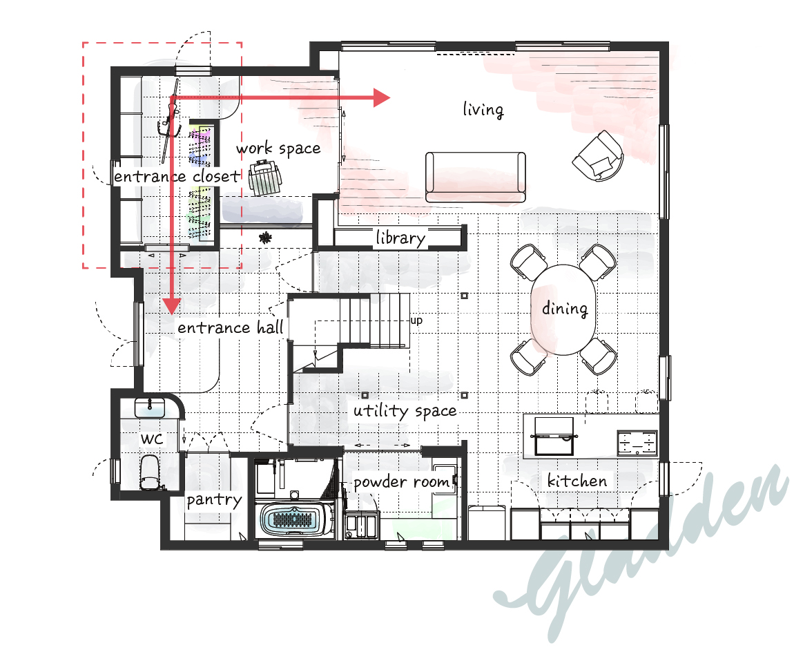グラデンのデザイナーがあえて提案したいのは、エントランスにクロゼットを設けることです。